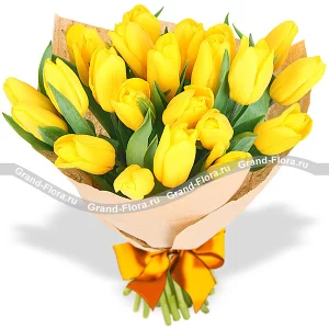 Яркий праздник - букет из желтых и оранжевых тюльпанов