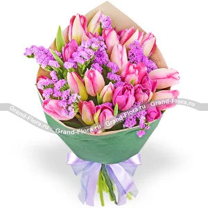 Шанталь - букет из розовых и фиолетовых тюльпанов