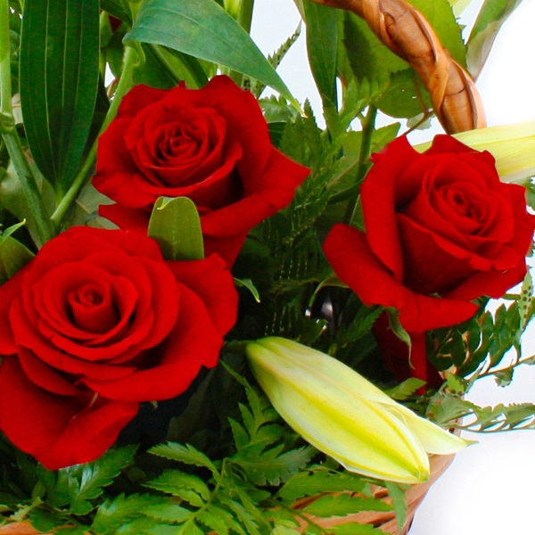 Букет красных роз в корзине - Добрая сказка